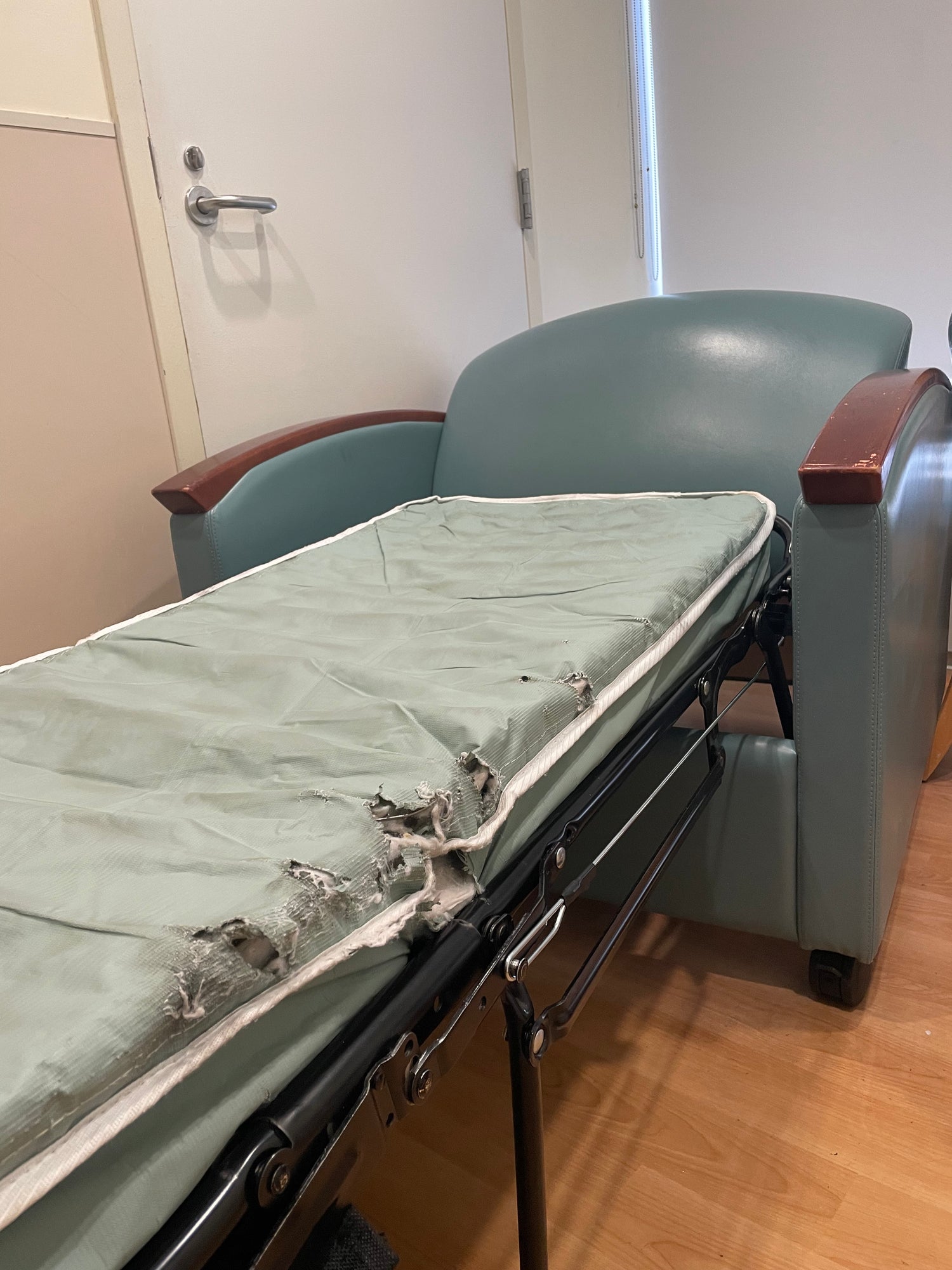 The most common hospital bed provides zero cushion, support, or clean space to sleep.
