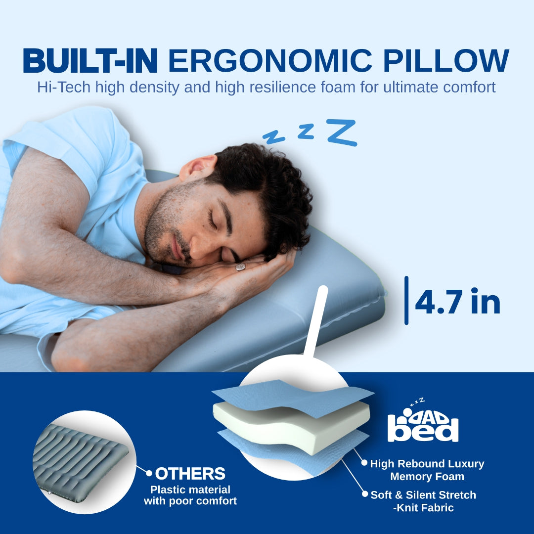 While other pads are noisy and feel like you're camping on rocks and roots, dadbed gives you the comfort of feeling like you are in your own bed back home!